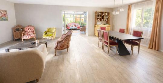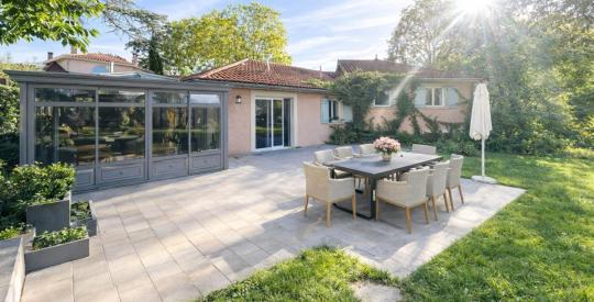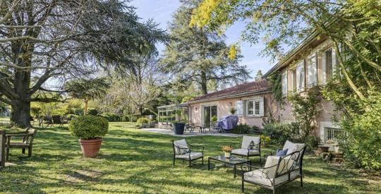 Située dans un environnement verdoyant et recherché, à proximité immédiate du centre du village, cette maison d'environ 200 m² offre un cadre de vie paisible, au cœur d'un parc arboré de 3 300 m², sans vis-à-vis.