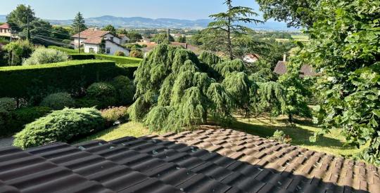 MORNANT Centre : Située dans un quartier résidentiel calme et recherché, cette propriété prend place sur une vaste parcelle de 2558m², arborée et offrant une belle vue dégagée.
