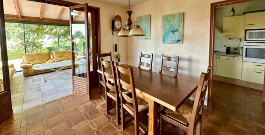D'une surface habitable d'env 167 m², elle se compose d'un espace de vie lumineux avec cuisine, séjour et véranda chauffée orientée vers le jardin.
