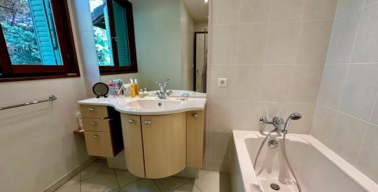 La villa est élevée sur un sous-sol de 87m2 qui dispose d'un garage, d'une buanderie, d'une chaufferie, d'une pièce annexe et d'une cave.