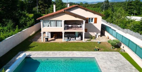 Située sur la commune de Charbonnière-les-Bains limite Tassin dans un quartier calme et très recherché, découvrez cette propriété avec des prestations de qualité composée de 8 pièces / 4 chambres plus bureau de 223,57 m2 de surface habitable avec piscine récente sécurisée et chauffée sur un terrain entièrement clos de 754 m2.