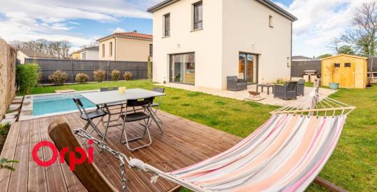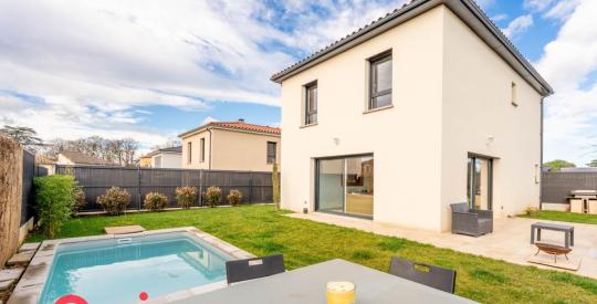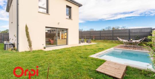 Cette villa moderne propose au RDC, un séjour avec cuisine ouverte, un wc, du rangement, terrasse privative et piscine pour profiter des beaux jours. Au premier étage, vous trouverez 4 chambres , une salle de bains, un wc et une salle d'eau.