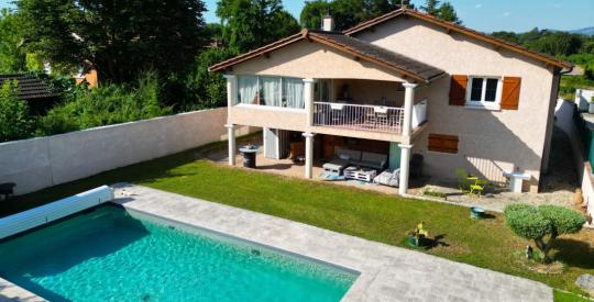 Située sur la commune de Charbonnière-les-Bains dans un quartier calme et très recherché, découvrez cette propriété avec des prestations de qualité composée de 8 pièces / 4 chambres plus bureau de 223,57 m2 de surface habitable avec piscine récente sécurisée et chauffée sur un terrain entièrement clos de 754 m2.