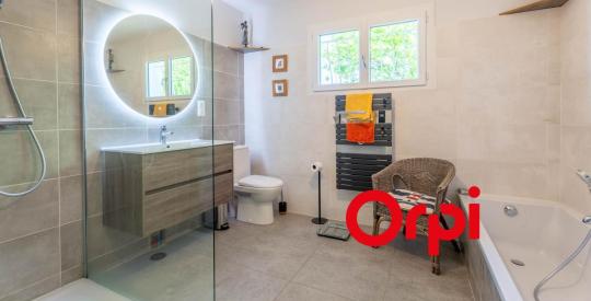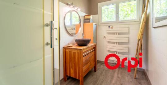 La maison de 150 m2 offre une architecture originale, cadre de vie très agréable, à l'intérieur de son grand jardin arboré vous pourrez, durant la belle saison, profiter des extérieurs ou plonger dans la piscine pour y faire quelques brasses à l'abri des regards grâce à la végétation.