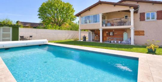 Située sur la commune de Charbonnière-les-Bains limite Tassin dans un quartier calme et très recherché, découvrez cette propriété avec des prestations de qualité composée de 8 pièces / 4 chambres plus bureau de 223,57 m2 de surface habitable avec piscine récente sécurisée et chauffée sur un terrain entièrement clos de 754 m2.