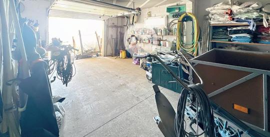 garage double de 46 m², espace garage avec 3 m de hauteur sous plafond, garage supplémentaire, nombreux espaces de rangement.