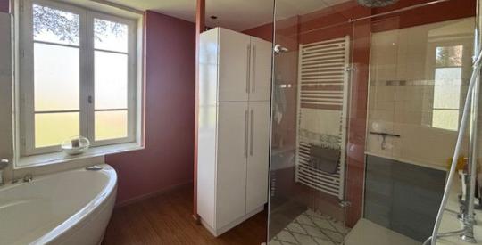 L'étage dessert quatre grandes chambres, dont une suite parentale élégante, une salle de bains et un second WC.