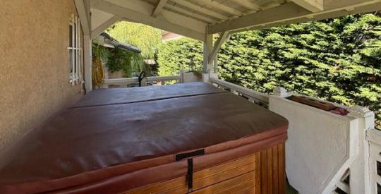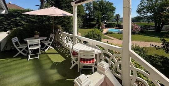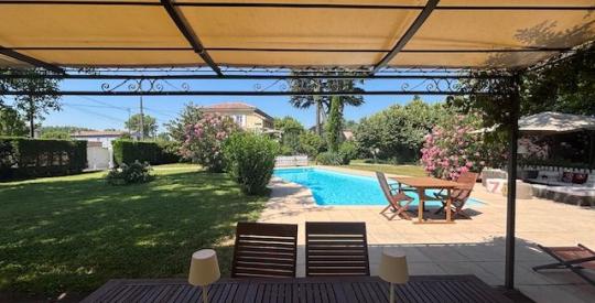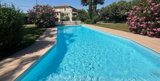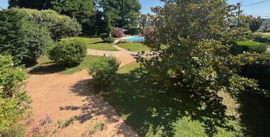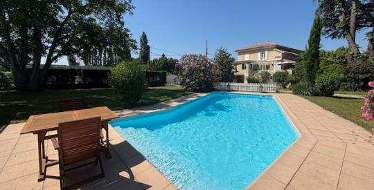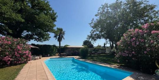 À l'extérieur, le terrain joliment paysagé avec ses arbres centenaires procure un cadre paisible et intimiste. Une vaste piscine et son espace détente permettent de savourer des moments de bien-être en toutes saisons.