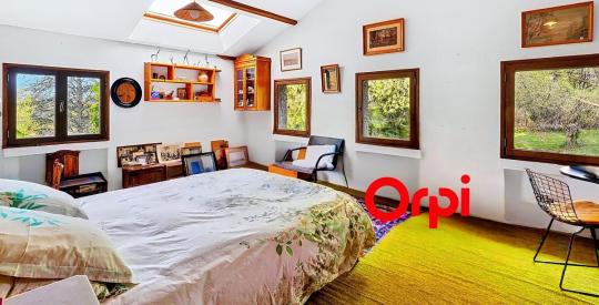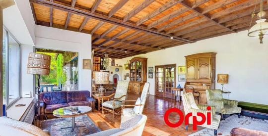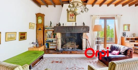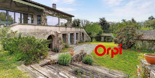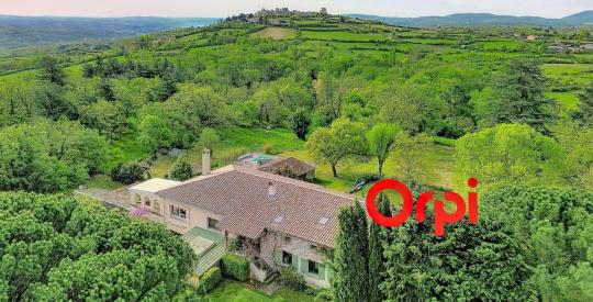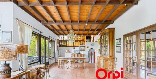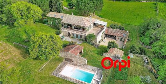 Édifiée sur les bases d'une ancienne ferme en pierres sèches, cette demeure a su préserver son âme tout en offrant des volumes généreux. Le vaste séjour, avec son plafond à la française et sa cheminée monumentale, invite à la convivialité. La cuisine spacieuse s'ouvre sur une terrasse semi-couverte, véritable belvédère sur le parc. Côté nuit, 6 chambres et un bureau permettent d'accueillir famille et amis dans une intimité totale.