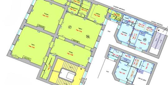 La 2ème partie (58 m2) bénéficie d'une entrée indépendante : elle comprend une pièce de vie, un coin cuisine, 2 chambres, un bureau en mezzanine, une salle d'eau avec WC, un couloir pouvant mener au gd appartement.