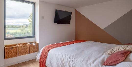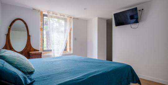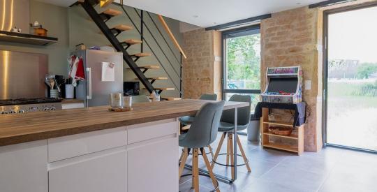 En parfaite harmonie, le second logement de 70 m² s'organise également sur trois niveaux. Il dispose de son propre séjour de 25 m² avec cuisine aménagée en rez-de-chaussée, d'une grande chambre avec dressing, WC suspendu indépendant et une salle de bains/salle d'eau à l'étage, et d'une pièce polyvalente au dernier niveau. Que ce soit pour accueillir des proches, exercer une profession libérale ou générer un revenu locatif, cet espace offre une flexibilité totale.