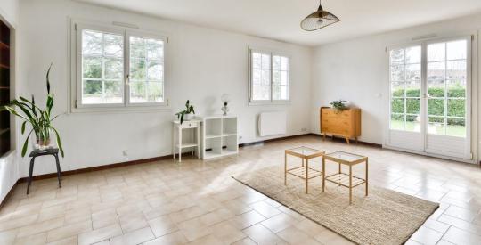 Au rez-de-chaussée, une entrée avec dégagement, une grande pièce de vie de plus de 43m2 lumineuse grâce à sa triple exposition avec un accès direct à la terrasse et au jardin, une cuisine séparée aménagée et équipée, une première chambre d'environ 13m2 avec salle d'eau privative ainsi qu'un WC séparé.
