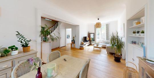 Sur une parcelle close et arborée de 390 m², cette maison de 1930 élevée sur 3 niveaux, vous propose le grandiose de l'ancien, grâce à ses hauteurs sous plafond, et ses cheminées du XXe siècle, couplé à une modernisation des volumes.