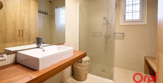 Au sous-sol, garage double, salle de sport, buanderie, cave, cellier, local vélos/technique, le tout sur 92 m2.