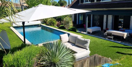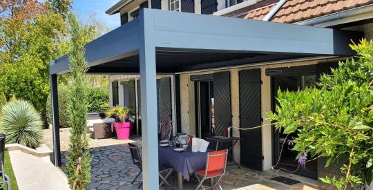 Chauffage par PAC air-eau, volets roulants électriques solaires, pergola haut de gamme.