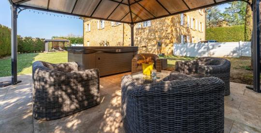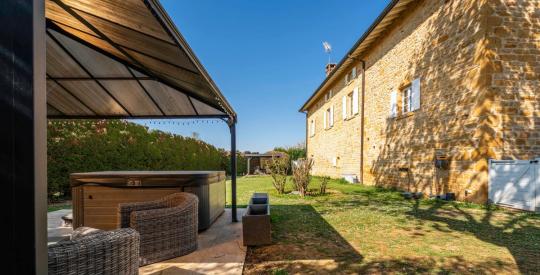 Le jardin clos et arboré constitue un véritable havre de paix. Vous y trouverez une terrasse ombragée idéale pour les repas d'été, un espace lounge avec jacuzzi sous pergola, ainsi qu'un coin détente, parfait pour profiter des beaux jours. Le terrain est plat et piscinable , facile d'entretien, et à l'abri des regards.