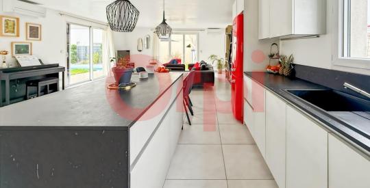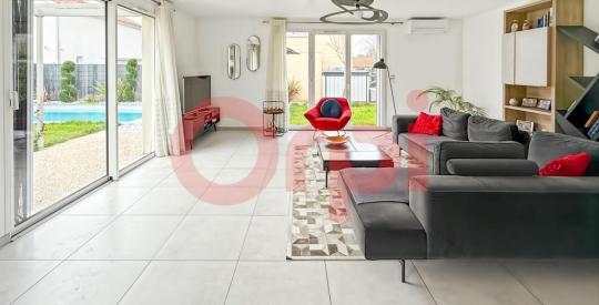 L'implantation de la maison sur son terrain de 470m² a été optimisée afin de conserver un large espace extérieur bucolique et bien proportionné. La piscine de 27m³, avec pompe à chaleur, est un atout supplémentaire de bien être et convivialité.