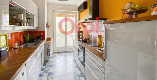 Très lumineux, cet appartement rénové, s'organise autour d'un salon ouvrant sur un balcon à vivre côté Est, partagé avec une première chambre. À l'Ouest, la cuisine et une seconde chambre bénéficient elles aussi d'un balcon, offrant ainsi un agréable prolongement extérieur et donnant sur le jardin arboré de la copropriété. Une salle d'eau et des toilettes indépendantes complètent l'agencement.