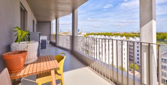 L'intérieur, aux lignes modernes et aux finitions soignées, propose une distribution fluide et fonctionnelle. La pièce de vie de 26 m², largement ouverte sur l'extérieur, profite d'une belle luminosité grâce à ses grandes baies vitrées. Elle se prolonge par un balcon remarquable de 31,34 m², accessible également depuis chacune des chambres. Ce vaste espace extérieur, véritable atout de l'appartement, offre un lieu de détente privilégié avec une vue imprenable sur la ville.