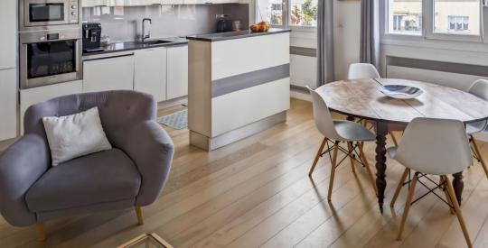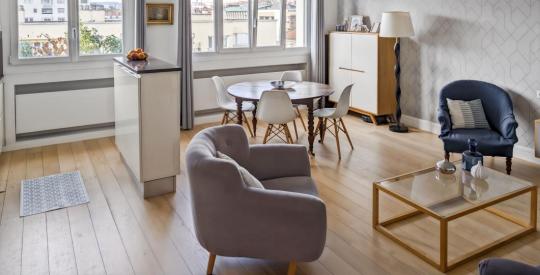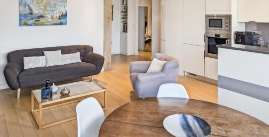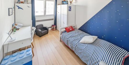 Dans un immeuble idéalement situé dans le 6ème arrondissement près métros Foch et Masséna, appartement familial d'une surface de 99.2 m² en état impeccable, décoration actuelle, très lumineux avec sa triple exposition. Il se compose d'une belle pièce de vie , d'une cuisine italienne ouverte entièrement équipée, un coin nuit séparé avec 4 chambres donnant au calme sur jardin clos et sécurisé de la résidence, une salle de bains, une salle d'eau, deux wc dont un séparé. Une grande buanderie aménagée. Chauffage collectif, eau chaude, eau froide compris dans les charges.