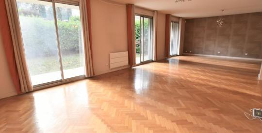 TASSIN LA DEMI LUNE, proche de l' Horloge, grand appartement lumineux de 160 m2 en rez de jardin, avec une belle terrasse et un jardin privatif de 127m2 dans un parc arboré au calme.