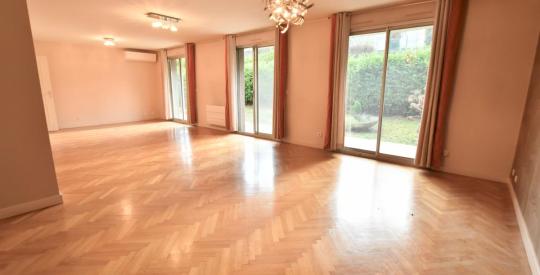 TASSIN LA DEMI LUNE, proche de l' Horloge, comprenant tout le Rez-de-chaussée de l'immeuble, grand appartement lumineux de 160 m2 avec une belle terrasse et un jardin privatif de 127m2, au calme dans un parc arboré
