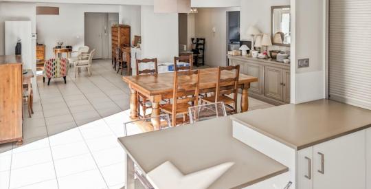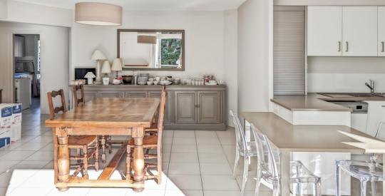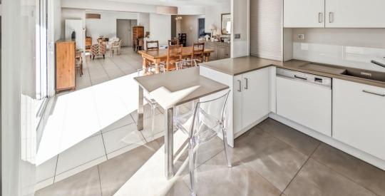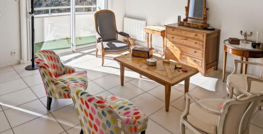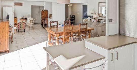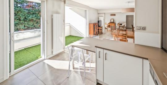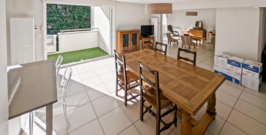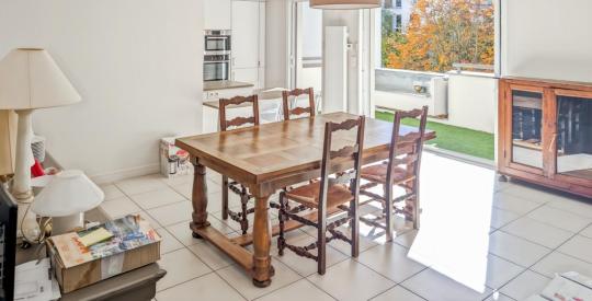 Espace de Vie Exceptionnel : Une vaste pièce de réception s'ouvrant sur une cuisine américaine entièrement équipée. L'ensemble est largement baigné de lumière et donne directement sur une terrasse et un balcon plein sud – votre havre de paix pour les repas ensoleillés ou la détente.