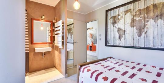 Vous profiterez d'un espace parental privatif comprenant une chambre d'environ 20 m², une salle d'eau ainsi qu'un WC séparé suspendu.