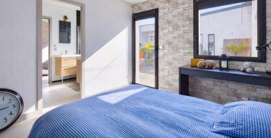 L'espace nuit enfants se compose de trois chambres supplémentaires avec placards (environ 13 m² chacune), dont deux avec accès direct au patio, d'une seconde salle d'eau, d'un couloir avec de nombreux rangements muraux, d'une buanderie ainsi que d'un second WC séparé suspendu avec lave-mains.