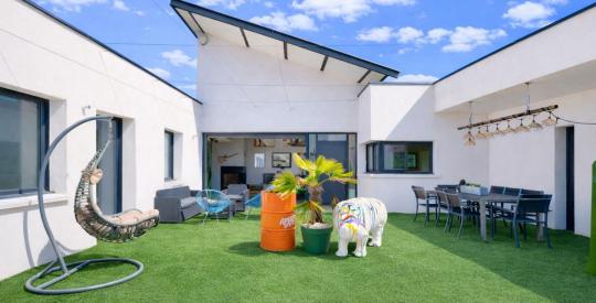 Située sur la commune de Tassin-la-Demi-Lune, en limite de Craponne, au cœur d'un environnement calme et très recherché, découvrez cette propriété contemporaine d'architecte de plain-pied, organisée autour d'un patio central de 75 m², sans aucun vis-à-vis, offrant des prestations de qualité.