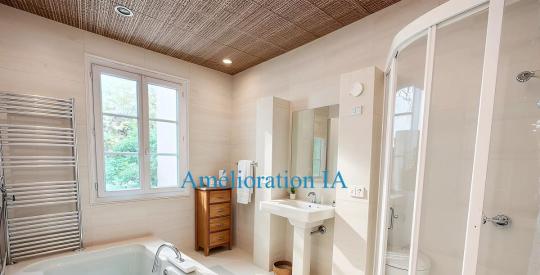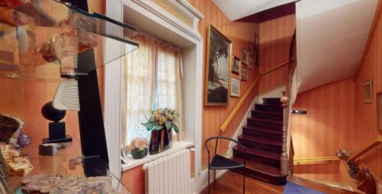 En rdc le hall distribue la cuisine équipée et le grand salon ouvrant sur la terrasse et le jardin généreusement arboré. Au 1er niveau 2 grandes chambres , une vaste salle de bains, au 2ème niveau 2 chambres et un bureau