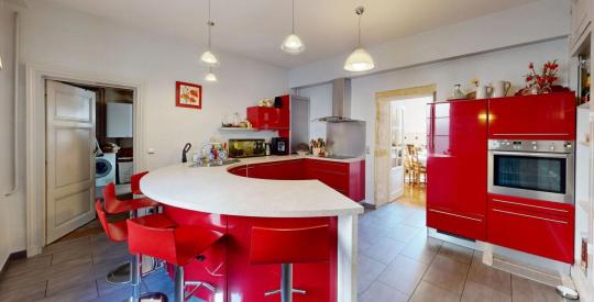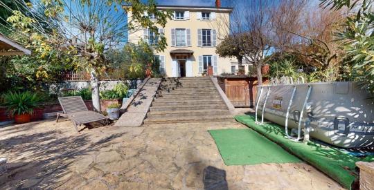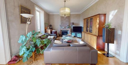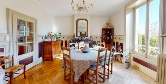 Retour à la vente . Rare sur le secteur venez découvrir cette très belle maison bourgeoise classée bâtiment patrimonial et édifiée sur un terrain clos et arboré classé de 1430 m2 . Elle est composée en rdc d'un hall qui distribue une cuisine dînatoire entièrement équipée, une salle à manger, un grand salon ouvrant sur terrasse, une buanderie et un vestiaire. Un splendide escalier en fer forgé dessert le 1er niveau où vous trouverez 4 belles chambres et une superbe salle de bains. Au 2ème niveau, un bureau, une vaste salle de jeux , une grande chambre et une salle d'eau.