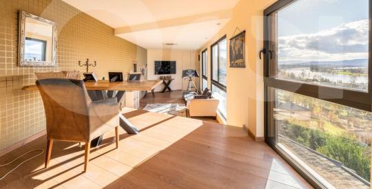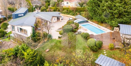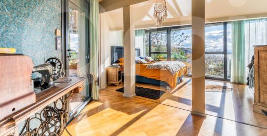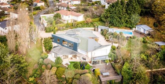 Derrière son architecture épurée se dévoilent 365 m² d'espaces lumineux et raffinés, magnifiés par une vue panoramique à couper le souffle sur le Val de Saône et les Monts d'Or.
