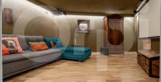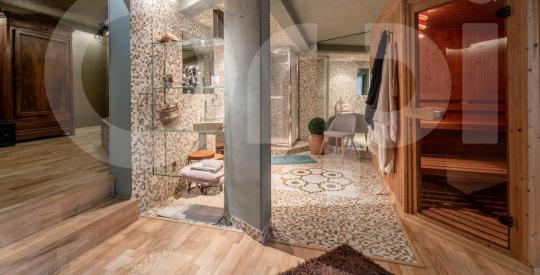 Un véritable espace bien-être complète l'ensemble : sauna, salle d'eau habillée de mosaïque et salon home cinéma créent une bulle de sérénité propice à la détente.