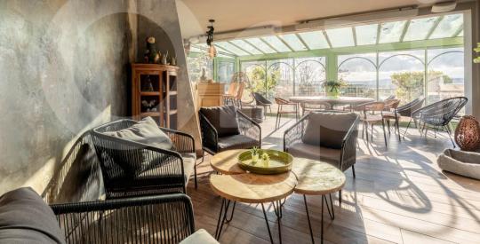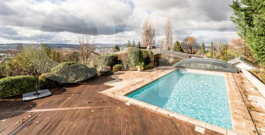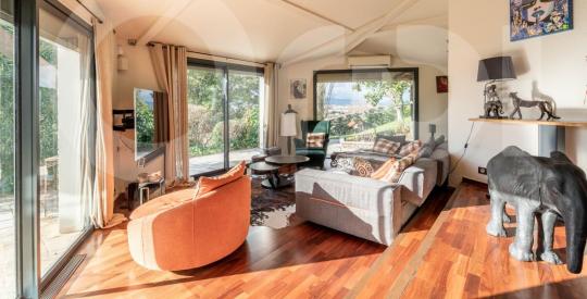 À l'extérieur, un écrin de verdure de 3 300 m², entièrement clos et paysager, offre intimité et quiétude. Piscine de 4x10 m, terrasse suspendue et cuisine d'été composent un lieu de vie privilégié pour savourer chaque jour ce panorama exceptionnel.