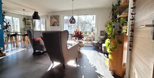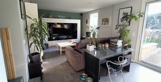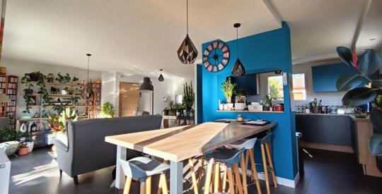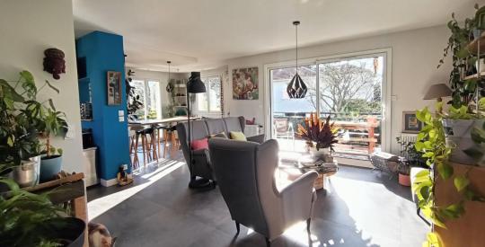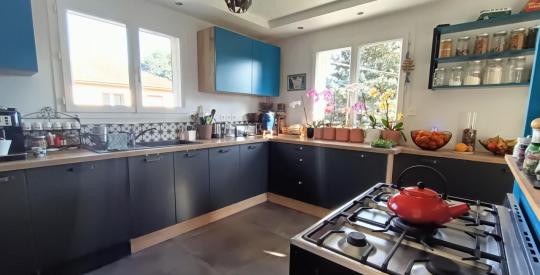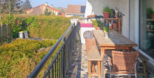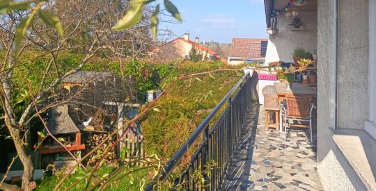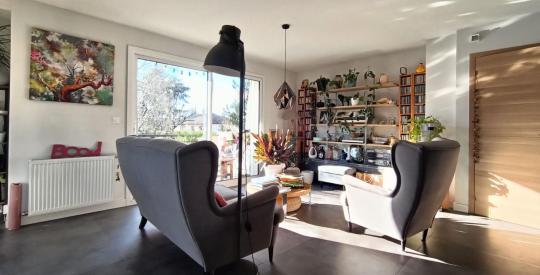 Secteur privilégié en haut de la colline de la Roue sur Rillieux, maison de 148 m² habitable rdc modifié avec hsp normale sans aucune mitoyenneté sur terrain arboré plat et plein sud de 850m², super calme dans une impasse, composée au rdc d'une entrée, un salon télé de 24m², une suite parentale de 20 m² avec sa salle d'eau et son wc privatifs, une buanderie, à l'étage une grande pièce de vie de 44m² avec triple expo sud, est et ouest comprenant un salon, une cuisine meublée et équipée avec un coin repas et l'accès à 2 balcons pour manger abrité, 3 chambres enfants, une 2ème salle de bain et un 2éme wc séparé, en annexe un garage de 25 m² avec porte sectionnelle automatisée , un grand espace extérieur pour stationner sans empiéter sur le jardin.