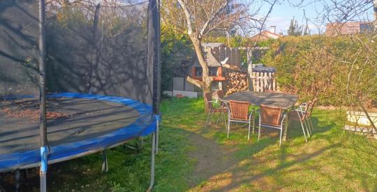 Un beau jardin arboré (cerisier pommier prunier etc...) sud et ouest , un barbecue en dur avec un coin repas, un coin discret abrité de la vue et du vent pour une terrasse et une piscine hors sol et un espace potager .