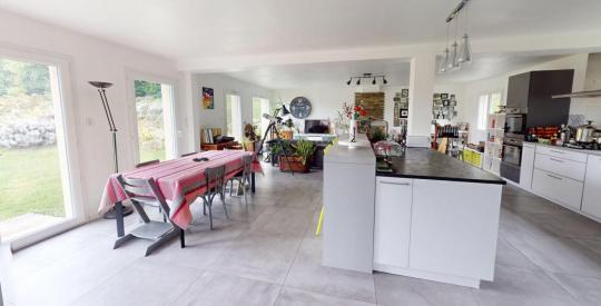 Au premier étage, une vaste pièce de vie lumineuse avec cuisine ouverte vous séduira par son confort et sa convivialité.