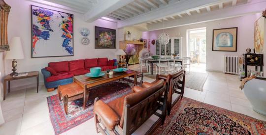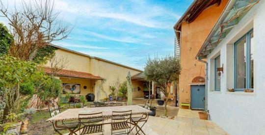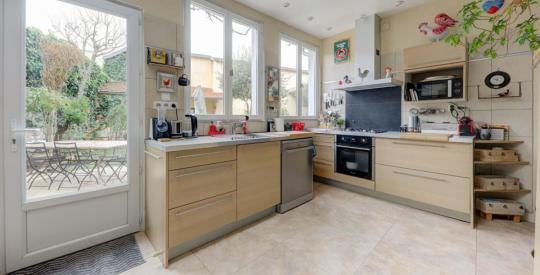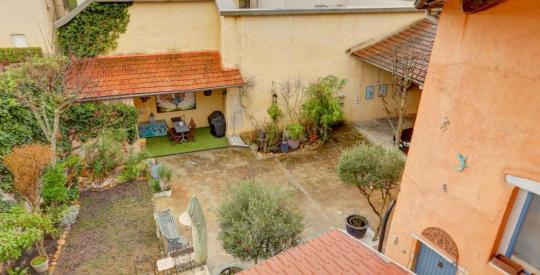 Elle dispose au rez-de-chaussée d'une cuisine équipée qui s'ouvre au Sud sur la grande cour intérieure, d'un grand séjour / salle à manger,