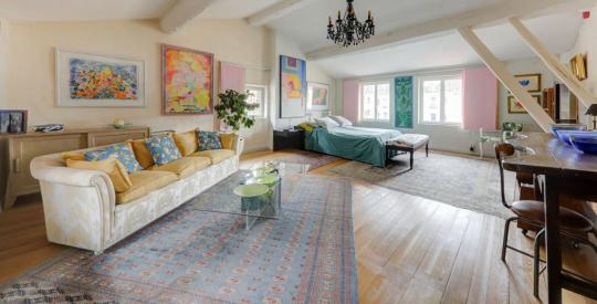 Elle dispose au rez-de-chaussée d'une cuisine équipée qui s'ouvre au Sud sur la grande cour intérieure, d'un grand séjour / salle à manger,