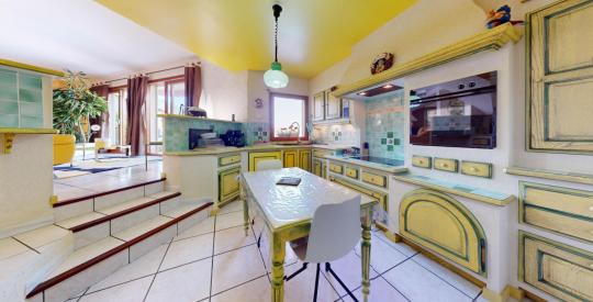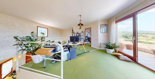 - puis au milieu l'espace à vivre de 87 m² avec la cuisine, le séjour et le coin télé, auquel s'ajoute une mezzanine comportant 2 pièces (idéale pour 2 bureaux ou coin détente).