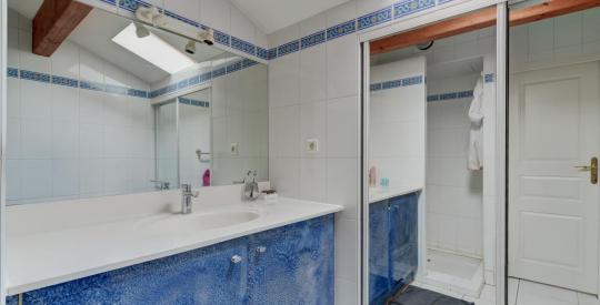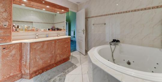 A l'étage, le dégagement dessert l'espace nuit composé de ses 5 chambres toutes plus spacieuses les unes que les autres. Organisée sur 2 ailes symétriques, vous découvrirez de chaque côté du palier 2 chambres, chacune reliées par une salle d'eau commune, l'une équipée d'une douche, l'autre d'une baignoire, et au centre de ces 2 espaces se trouve la Master Bedroom avec hauteur déplafonnée, aménagée avec dressing, salle de bain privée, et terrasse panoramique.