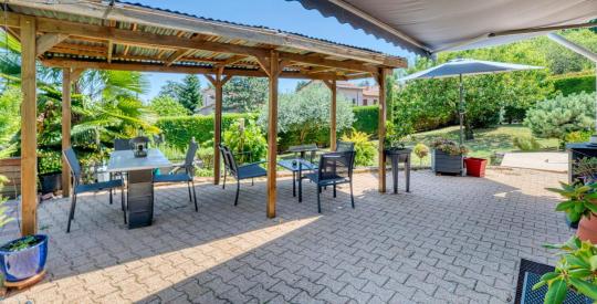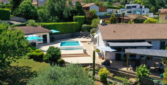 À Collonges au Mont d'Or, sur les hauteurs de la commune, collé St Cyr au Mont d'Or, découvrez cette villa aux accents méditerranéens, baignée de lumière et enveloppée de végétation.