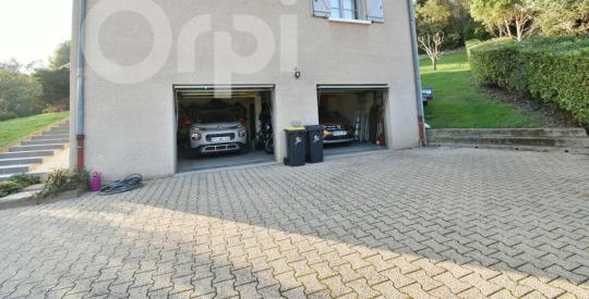 En sous-sol grand garage double de plus de 50 m² entièrement carrelé, cave, buanderie et rangements.